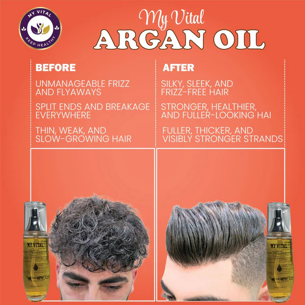 My Vital Argan Oil of Morocco is a nourishing penetrating oil that restores shine, softens dry hair, and reduces frizz. Ideal for damaged, dull, or chemically treated hair.